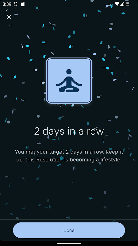 Meeting your goals? Resolutions gives you achievements to celebrate your streaks.