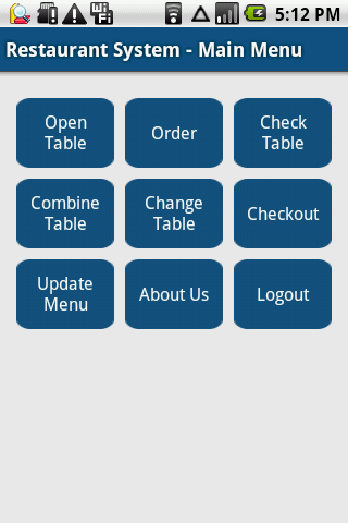 d) Server: all data are keep in server, like order, menu, table and login. Support multiple tablets take orders at same time.