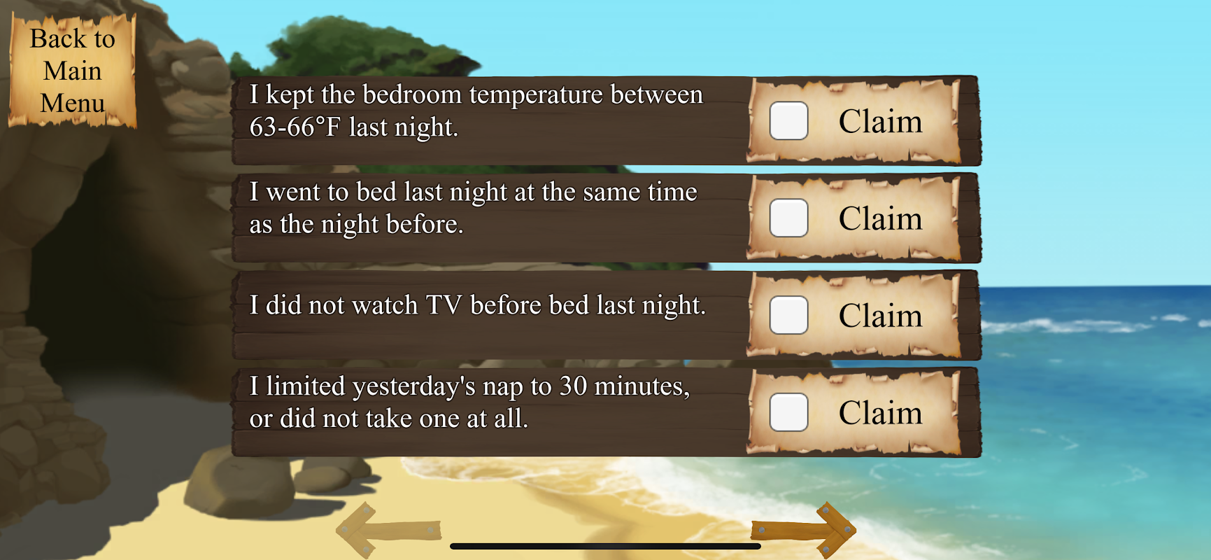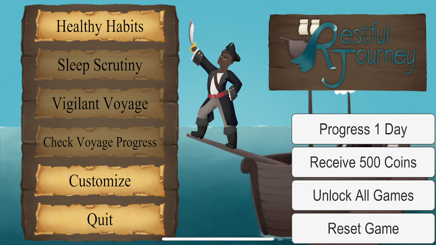 Restful Journey is a puzzle survey game where you answer questions and learn about what sleep habits are healthy. Go on a fun, pirate-themed adventure with this game by documenting your sleep habits, helping the pirate crew change their rooms so they can get a good night's sleep, and answering questions to test your knowledge on the topic of sleep hygiene.