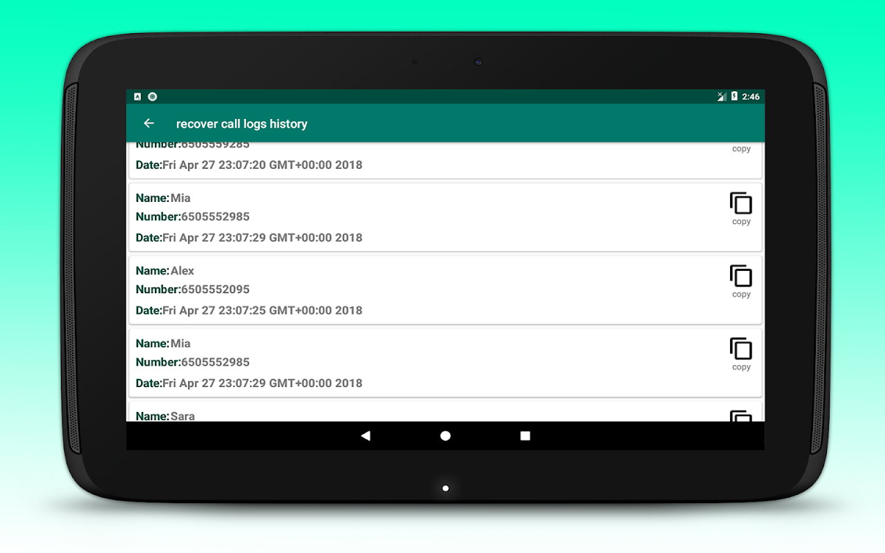 If you've important numbers and you don't want to lose them this is the right most useful app to keep your call log safe and secure , using "recover call logs history" you can also restore your calls log quickly from any date you want. this app will also backup your daily calls history automatically at any time you want to make sure that's your contacts numbers are safe.