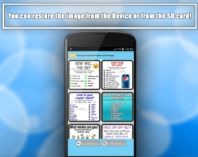 Restore Deleted Photos & Image application allow you to Recover your deleted photos now with this simple android Restore Image for free!