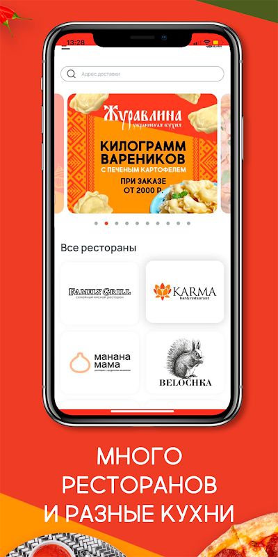 The app contains restaurants closest to you with free delivery, a personal account with special promotional codes for gifts and discounts.