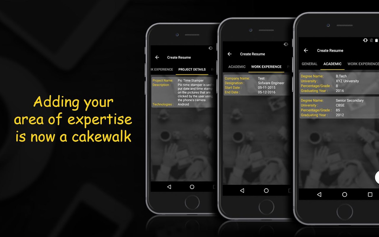 Is it accurate to say that you are searching for a free resume builder app to make your own CV in a quick time? This resume builder application developed by our top developers will empower you to outline all the essential subtle elements with your phone itself. This CV maker is particularly valuable to produce the prepared resume/CV using your mobile phone; rather than depending on laptops or computers for the same. In addition, this application has several engaging resume designs. We are also planning to add more and more designs in the upcoming days.