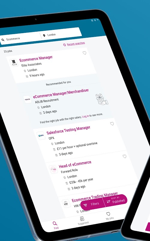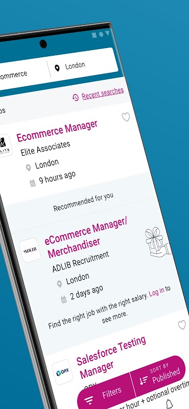 - Filter by relevance, salary, date or distance
