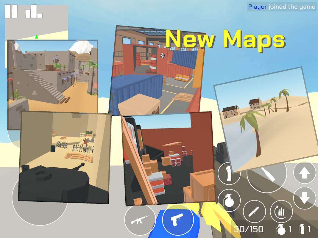 Each map has different features, and some have tanks, static machine guns, and airplanes. Play intense matches on small maps or drive vehicles around in the desert!