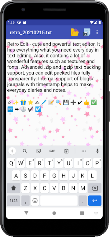 📝 Retro Edit - cute and powerful text editor. It has everything what you need every day in text editing. Also, it contains a lot of wonderful features such as textures and fonts. Advanced .zip and .gzip text packing support, you can edit packed files fully transparently. Internal support of blogs/journals with timestamp helps to make everyday diaries and notes.