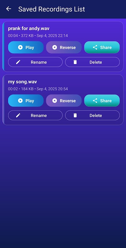 Reverse Audio is the fast, simple app to play sound backwards. Record or import any audio clip and reverse it in one tap - perfect for funny voices, music snippets, and creative sound experiments.