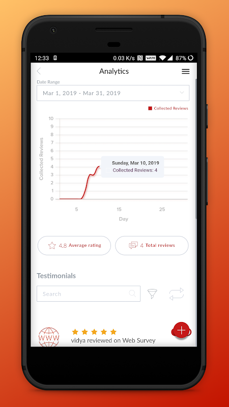 The ReviewRev app gives you on-the-go access to Testimonial Collector, Reputation Manager, and Competition Tracker. Send surveys to customers straight from your phone, monitor all your reviews from one place, and keep an eye on what people are saying about your top competitors online.