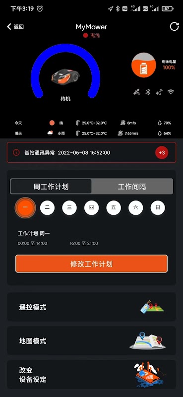 5. Via WiFi/4G technology support, you can monitor your mower whenever you want, you can find the mower status, mowing completeness easily from your mobile device, and you also can change the mower settings, working schedule with your own Willings.