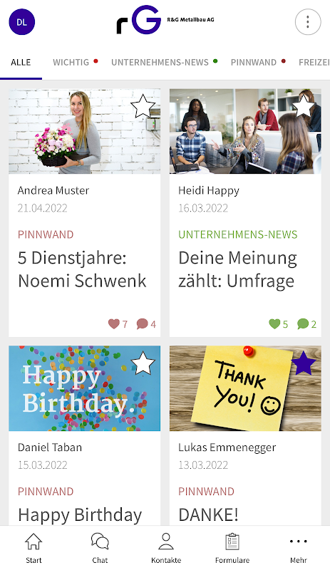 Find out the latest information about your company at any time, regardless of location, find your work colleagues easily and simply in the contact directory and chat 1:1 or in group chats. All with reliable Swiss software on secure Swiss servers.