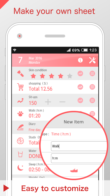 Rhythm Care helps you improve daily routine and stay healthy. You can manage many different types of data, Weight, Body-fat, Blood-pressure, Sleep-time, Body-temperature, Steps, and whatever you want.