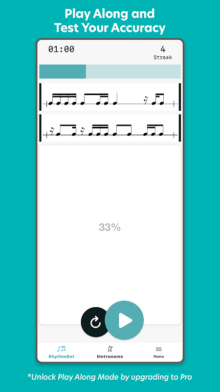 *PLAY ALONG MODE: RhythmBot measures your accuracy and longest streak as you tap the rhythms.