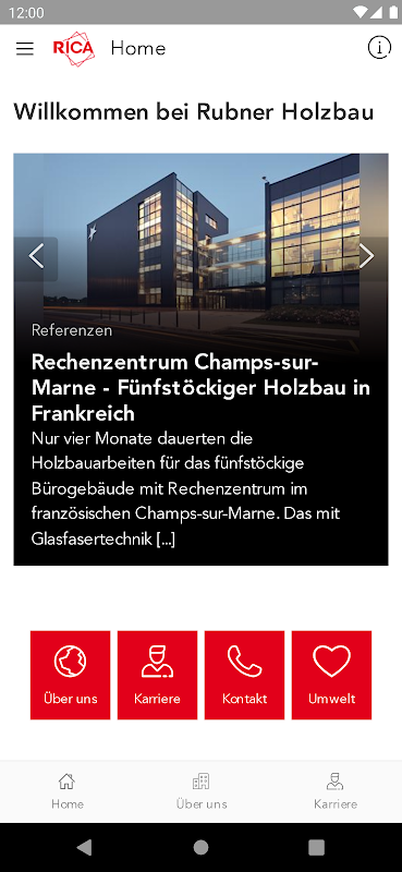 RICA, the Rubner Information & Communication App, is a Rubner Holzbau communication app that was primarily developed for employees, but also offers partners, suppliers, customers and interested parties up-to-date information about the company.