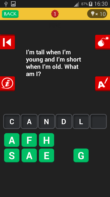 There will be lots of levels for you to unlock if you answer enough riddles, so you can guess futher riddles without having to guess the current one like other riddle games.