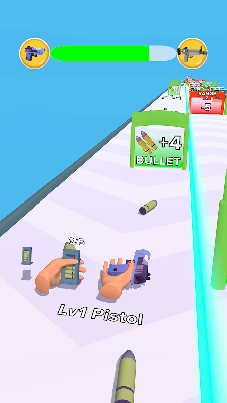 To collect bullets, simply run over them. Once you have enough bullets, swipe right to load them into your gun. Then, start shooting! The more bullets you shoot, the more points you'll score.