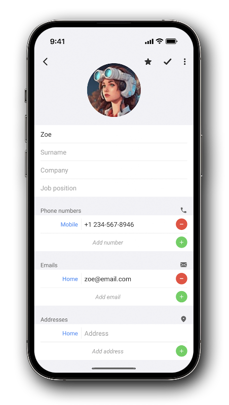 - Create private contacts, such contacts are not visible to other apps