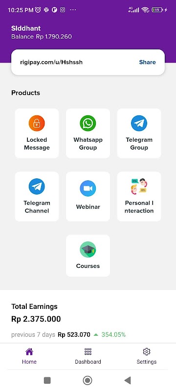 Through the Rigi app, you can create both paid and free WhatsApp and Telegram groups. You can also create and sell courses and host secure webinars with only authenticated attendees. You can share group links with your community on all platforms for better reach and maximum earning.