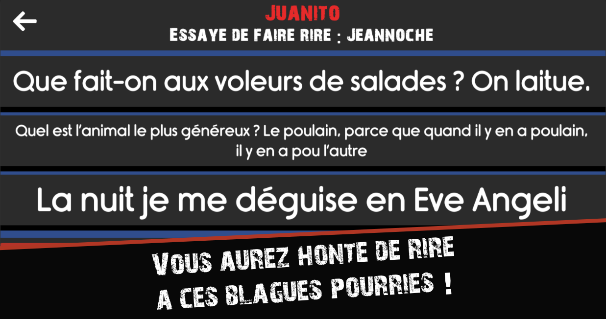 RIGOLOL offers hundreds of jokes in various styles to surprise even the regulars: puns, spoonerisms, absurd jokes, lines from cult films... it's all there.