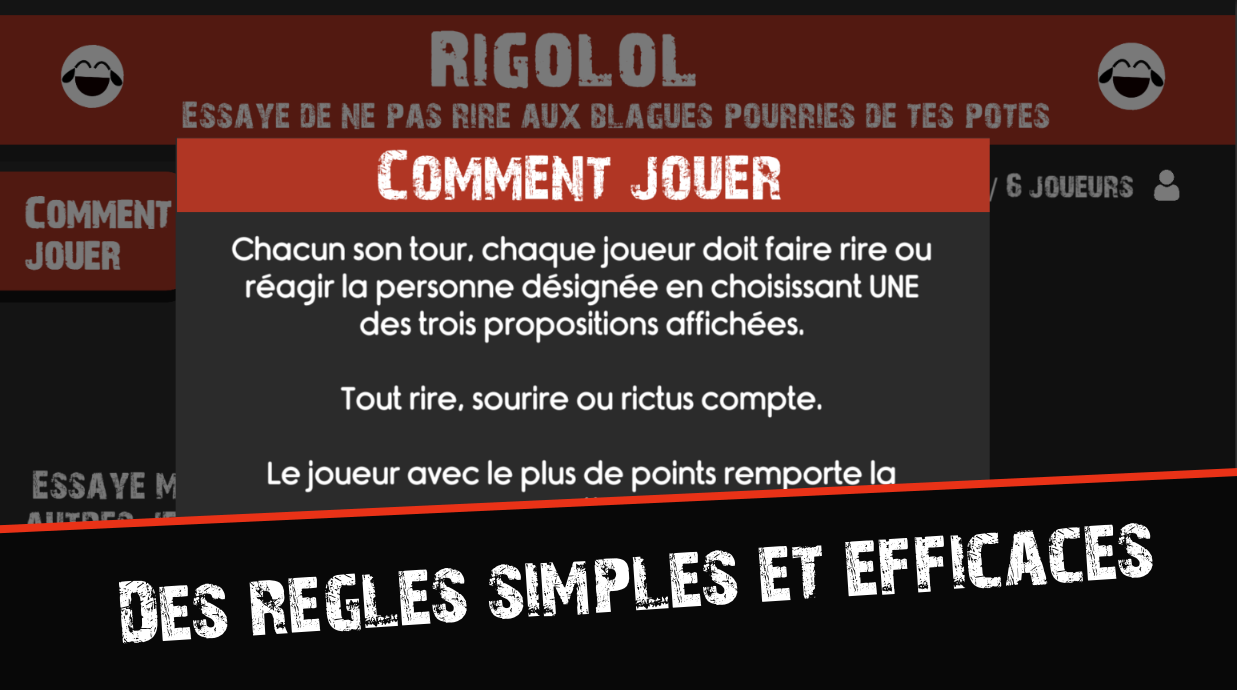RIGOLOL takes up the spirit of “dad jokes” and the show LOL: Who laughs, comes out! in a mobile game version, for even funnier evenings with friends. Sometimes you'll be ashamed to laugh... but that's what makes it so fun! 😜