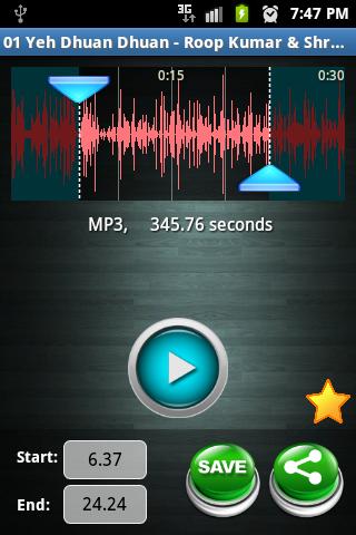 After selecting end point from songs for extract ring, then you can save that selected area into your SD Card.
