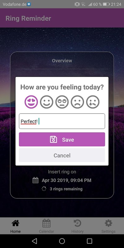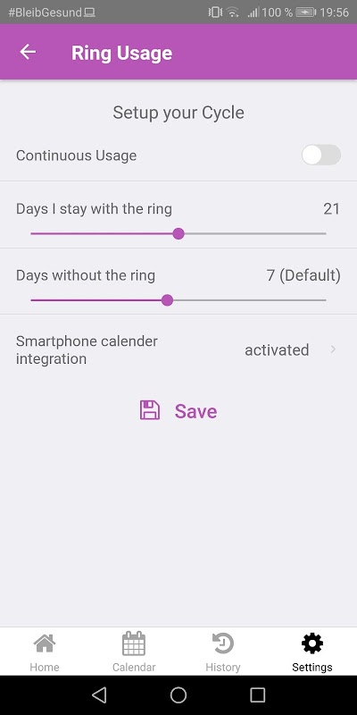 • Variable period duration: Enter the desired length of your ring usage and pause time yourself (recommended: usage of 21+7 days or 28 days)