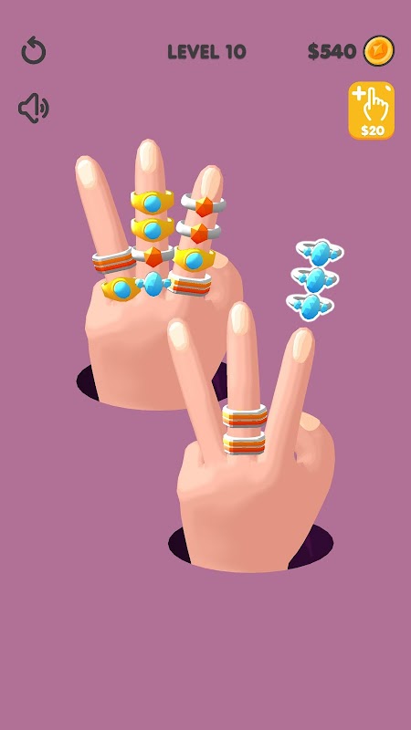 As you dive into the world of open and closed fingers, each adorned with stunning rings, your mission is clear: sort and connect the identical rings to earn coins. With each level, the challenge intensifies, pushing your sorting abilities to the limit. Are you gallant enough to conquer this puzzling adventure? Play now and find out!