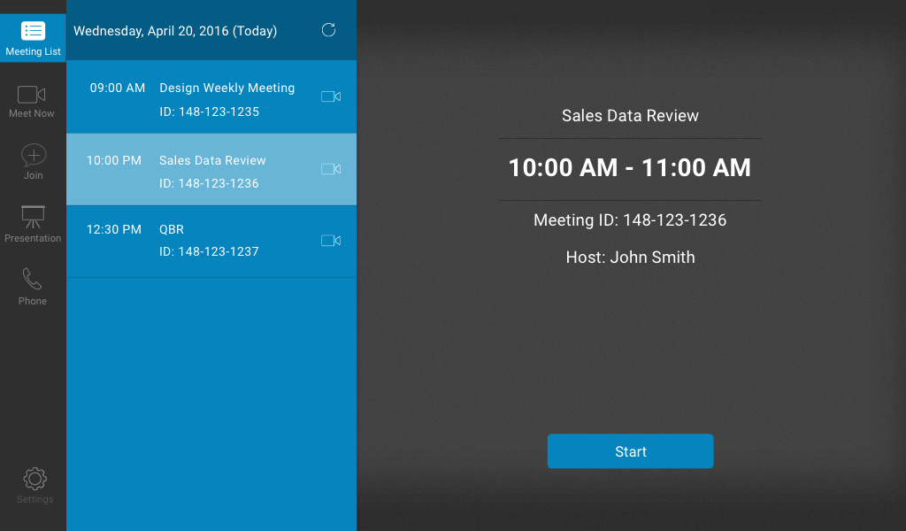 • Touch meeting controls on tablet to manage meetings, adjust camera, and more