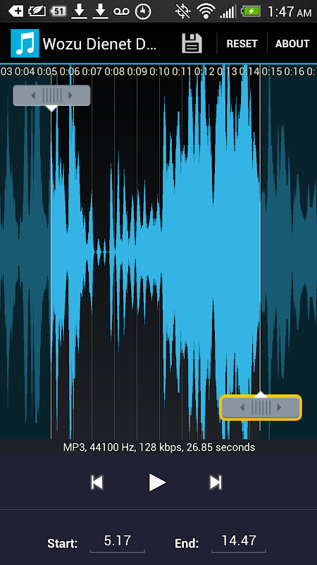 You can make the ringtone from your existing music files, like your MP3 songs. You can also record your own sound files right onto your Android device with mobile sound maker. You can create ringtones from the MP3 songs on your device. You can use the entire song, or cut out, trim and edit just the pieces of the song you want. Then you can preview your custom personalized ringtone before assigning it to a person - or to everyone on your phone on this ringtone creator. These sounds you make can also be used for alarms and notifications as well. The app works as a cutter and trimmer of your mp3 or sound file to the custom ringtone, alarm or notification that you want.