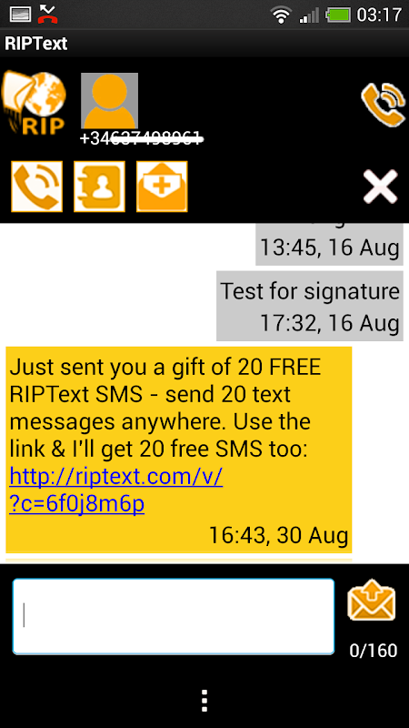 Avoid the massive cost of sending standard text messages (SMS) via your mobile operator and let RIPText deliver it for you....RIPText is NOT an 'IM' replacement, it uses the existing global SMS infrastructure to deliver text messages anywhere in the world, but at a fraction of the cost.