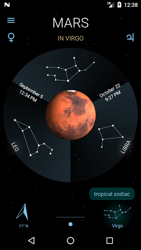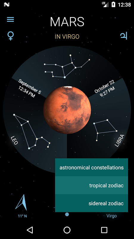 ◾ The current position of the astronomical objects relative to your location by using a 2D compass