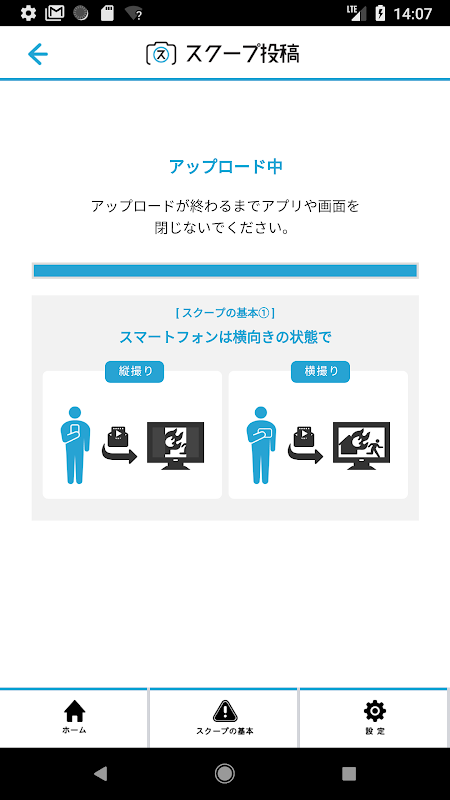 「RKKスクープ投稿」では、スマートフォンを「横向き」にした状態での撮影を推奨しています。