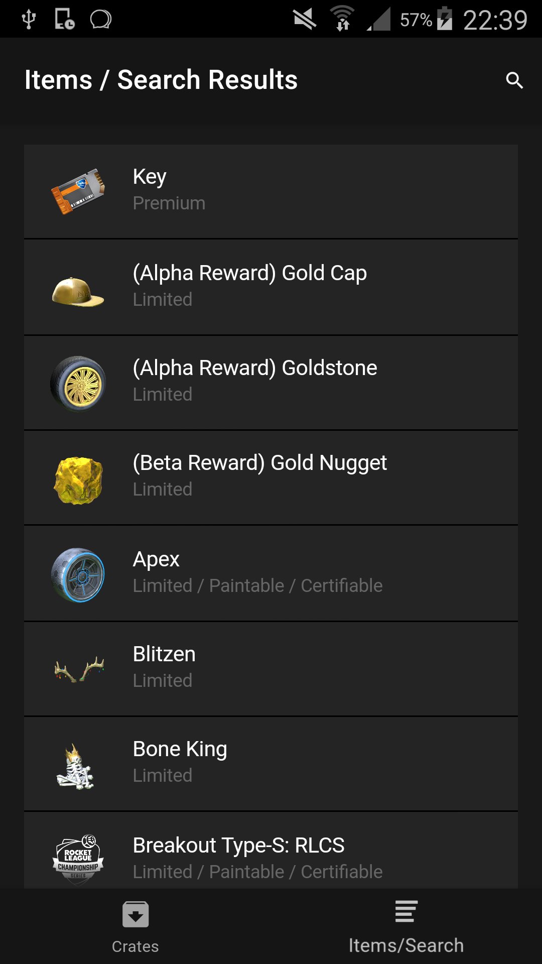 View and search Rocket League items (and simulate opening crates)