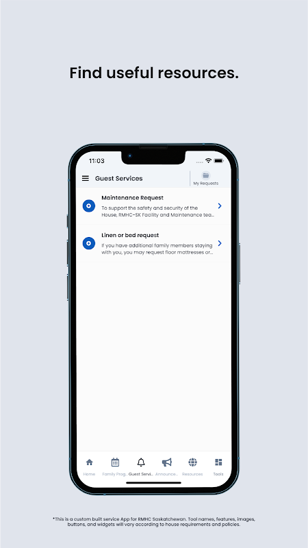 Stay connected with the RMHC Saskatchewan Community with our RMHC Saskatchewan Mobile App! Send messages or requests directly to the house staff, get information through various tools while enjoying a user-friendly interface.