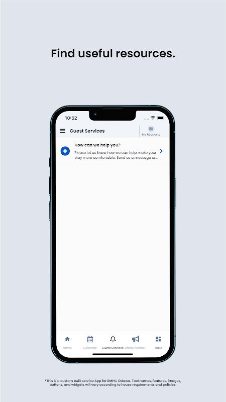Stay connected with the RMHC Ottawa Community with our RMHC Ottawa Mobile App! Send messages or requests directly to the house staff, get information through various tools while enjoying a user-friendly interface.