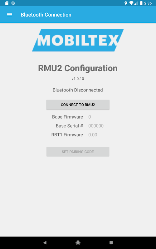 The RBT1 is always in a Bluetooth pairing mode and requires a pairing code entered on the app. The pairing code (default=123456) can be found and changed with the app or reset by tapping the RBT1 5 times in 10 seconds with a user-supplied magnet. Once paired, the Android device can reconnect without needing to re-enter the code.