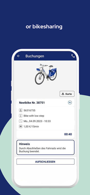 - Use of bike- (nextbike, flux), car- (flux) and scooter-sharing (Dott) incl. direct payment in the app.