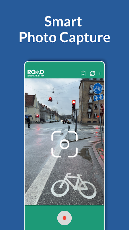 Start recording and let ROAD SYSTEM™ do the work. The app automatically captures high-quality photos of road conditions as you travel, eliminating the need for manual photo-taking. Simply start a recording session, and the app intelligently captures images based on movement and distance traveled.