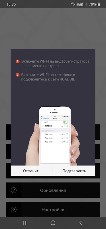 This application allows you to control the ROADGID BLICK 3 DVR via a Wi-Fi connection with your smartphone or tablet. Using this application, you can download new software to your device or update the database of GPS cameras, configure the device, view video in real time, save it to the memory of your smartphone or tablet, and also share it.