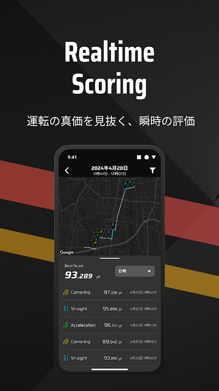 Just by placing your smartphone, you can score your driving skills in all situations in real time!