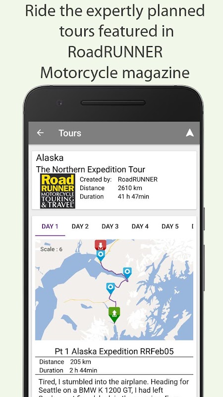 RoadRUNNER Rides lets you navigate 500+ tours as seen in RoadRUNNER Motorcycle Touring & Travel magazine with full GPS navigation including turn-by-turn directions and voice guidance without a limit on the amount of via points. You can also create your own custom routes with the easy-to-use in-app route planner.