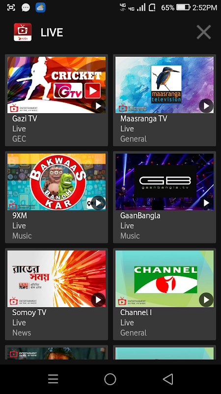 Robi TV is a mobile streaming application with premium Live TV, Loop and VOD content. This Mobile TV app has leading Bengali, Indian and International TV channels spanning all genres. Apart from TV channels, the content portfolio encompasses hundreds of popular videos and movies.