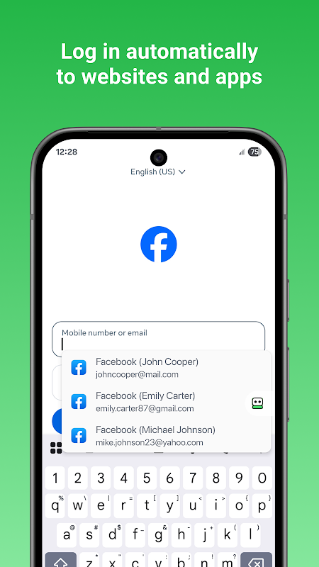 • Automatically fill in passwords in apps and sites visited using Chrome or other browsers.