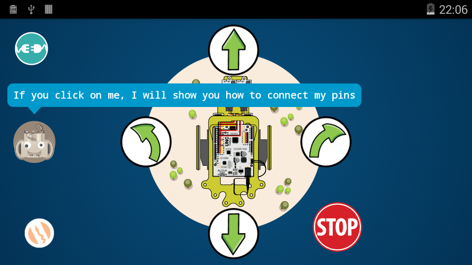 You can see a schematic of the connections at any time by clicking on the icon of the robot.