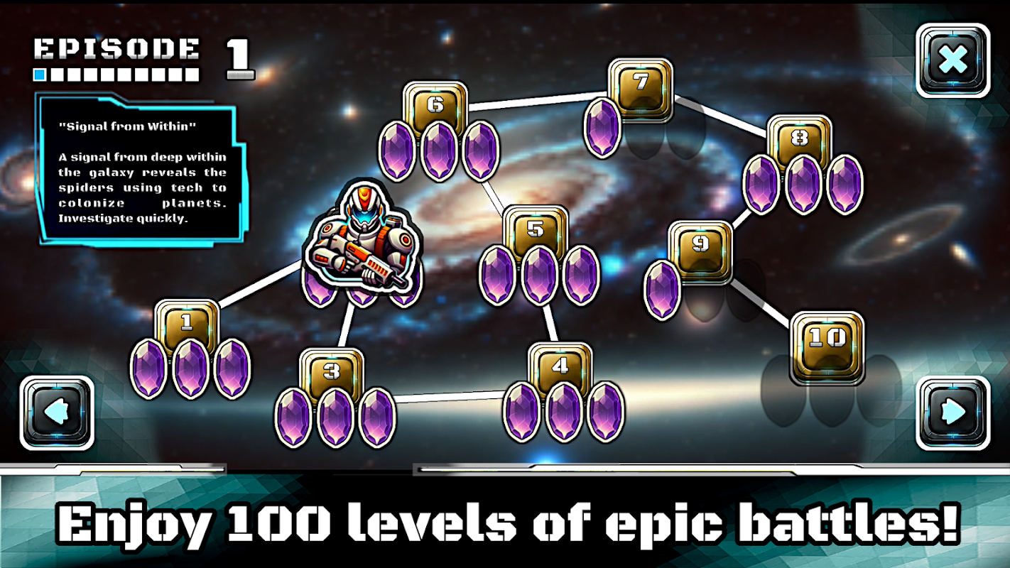 Defend the galaxy from robotic spiders in fast-paced sci-fi battles!