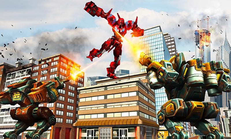 This is new modern warfare where as a robot hero you have to take down enemy robots in combat arena. Make your robot transform into car to fight mega bots in marvel contest of heroes alliance. While bot fighting use knock punches, boxing skills, x-gun attacks, kicks and shoot missiles on monster mech robots with rapid intensity to be a superhero of outlawed city.
