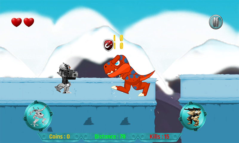 Enjoy endless run of spider shooting robot and kill exotic dinosaurs on the run.