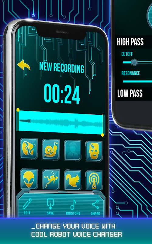 Record sound and edit audio recordings to sound like a robot! With this robot voice recorder and changer you can easily change your voice to a robot! This sound effects app has many different sound filters and effects that will make you laugh! Whether you want a man robot to woman robot voice changer or any robot voice maker, you will love this change your voice app! Download now and have fun with Robot Voice Changer!