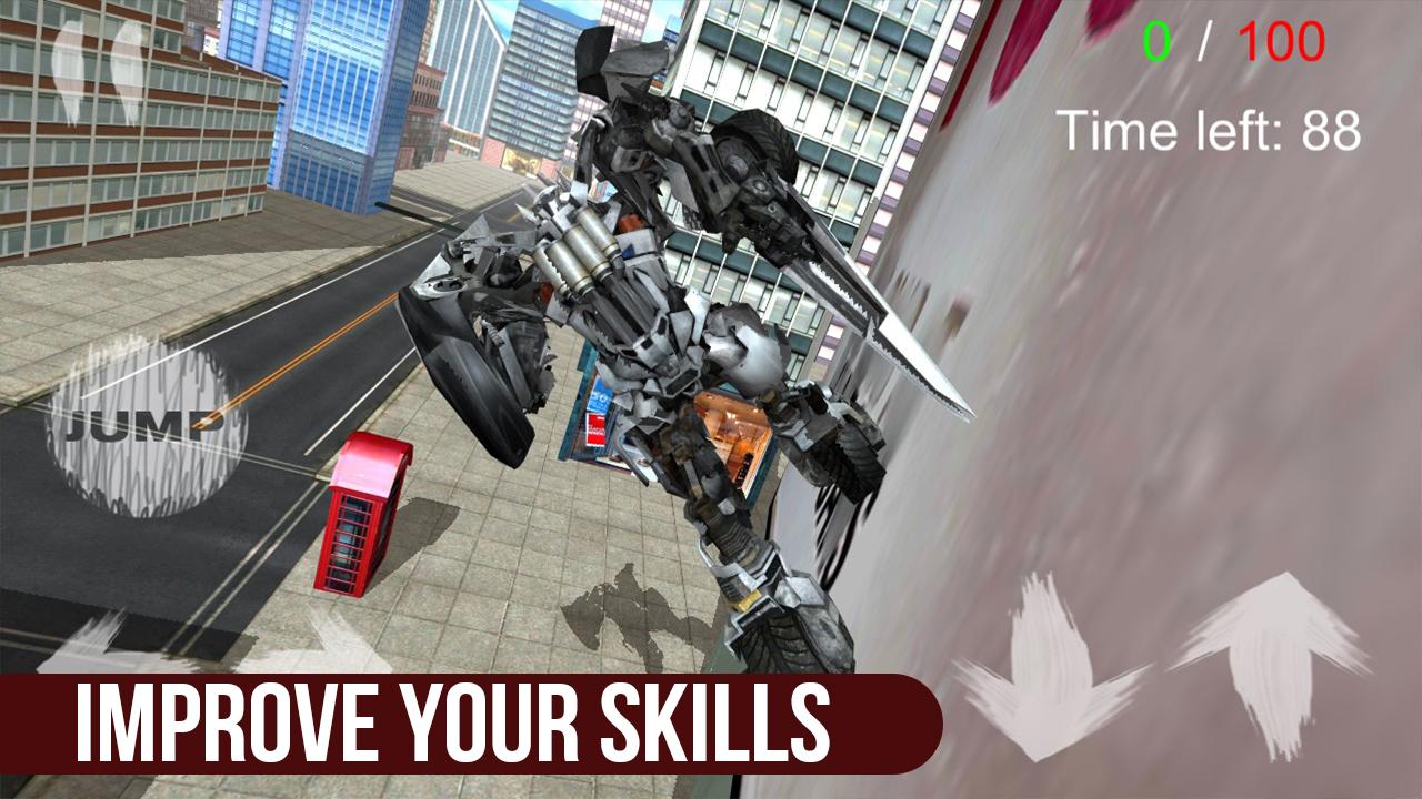 In the simulator you will find beautiful 3D graphics, so you can fully enjoy the breathtaking views of the vast city of X Ray and tech buildings. Experience the real effect of the flight and the beauty of a futuristic robot! Thanks to the good physics you will be able to think through your movements, up stunning tricks and even destroy other hoverboard of carobot. Energetic music of the simulator add the fun to competition and you will never get bored during breaks.