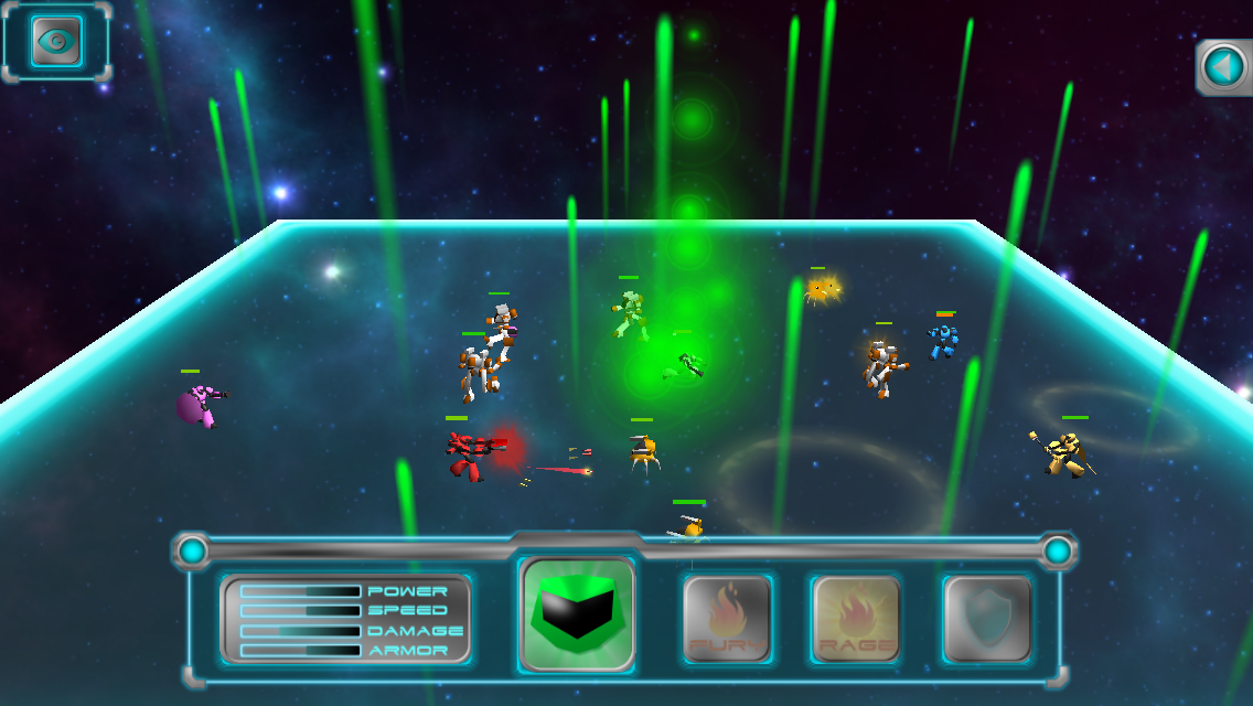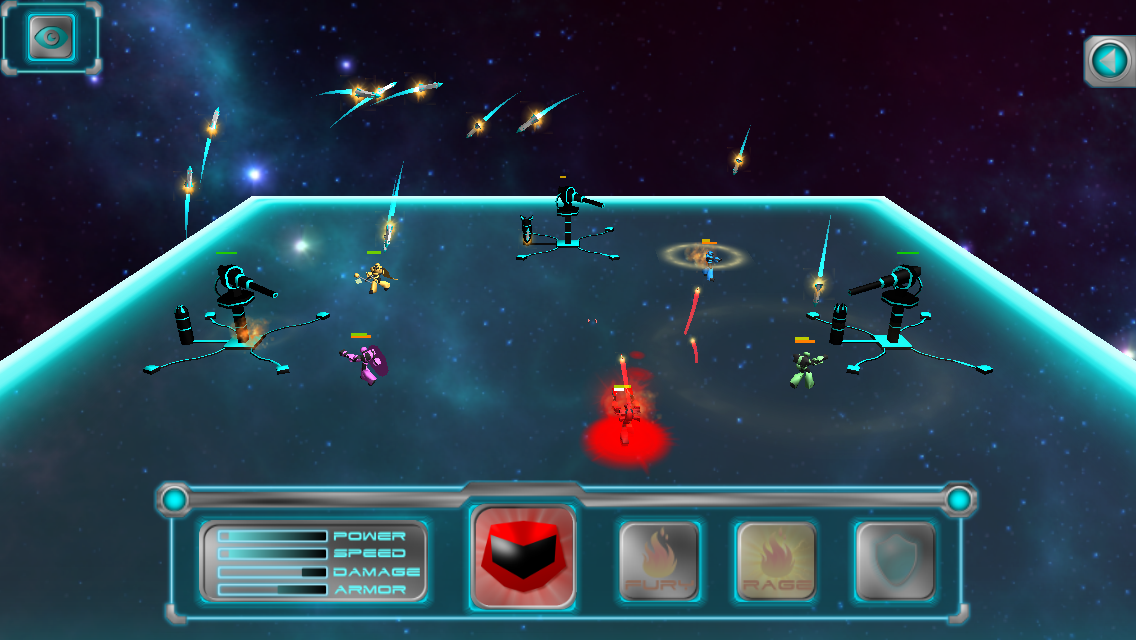 An energy bar allows you to activate the "Shield" mode for defense, "Fury"