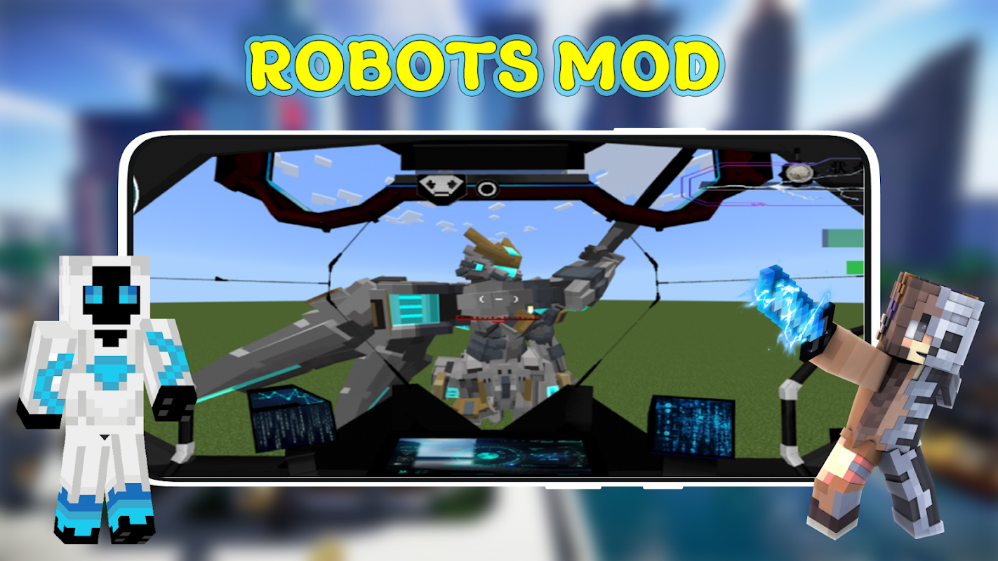 Immerse yourself in a world of mechas, summoners, robots, other transformers and strategic warfare with the Robots Mod for Minecraft PE. Transform your gameplay, summon your mecca, use new skills and powers from control cabin and dominate in the pixel world of Minecraft with unprecedented power and style of mecca addon. Our team hopes that you’ll enjoy Robots Mod for MCPE (pocket edition) with cool meccas and robots, and find time to test our other mods with cool skins and skinseed, maps, different mobs, texture packs, blocks, items, textures, realistic graphics with ray-tracing, RTX shaders, MCaddons. Enjoy your multicraft game of Mincraft with realistic graphics and textures!